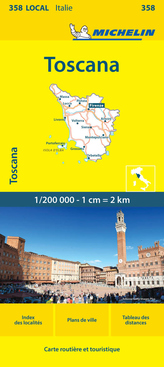 Met een schaal van 1/200 000 oftewel 1 cm = 2 km en reliëf van satellietbeeld biedt de Michelin LOCAL kaart Toscana u een exact beeld van de topografie. Dankzij de aangeraden toeristische trajecten laat ze u toe om alle rijkdom en plaatselijke bezienswaardigheden grondig te verkennen en de mooiste toeristische sites te ontdekken, uitgekozen en aangeduid door Michelin. Om u beter te verplaatsen kan u de plaatsenindex, de afstanden- en tijdtabellen en de stadsplattegronden gebruiken.