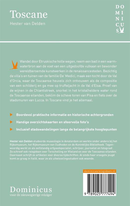 Ontdek Toscane op vakantie met deze Dominicus-reisgids en verken prachtige steden als Pisa, Florence, Siena, Arezzo en Lucca. Struin door de straten van Florence, steek de iconische Ponte Vecchio over en bewonder de wereldberoemde kunstwerken. Ga op onderzoek uit in het prachtige stadhuis van Siena en wandel over de stadsmuren van Lucca. Maak een tocht door de Val d'Orcia of ga op truffeljacht in de Val d'Elsa. Laat je verwonderen door de eindeloze cipressenlanen, olijfboomgaarden, wijnranken en de toonaangevende Medici-villa's en -tuinen. En vergeet niet te genieten van de voortreffelijke regionale keuken en prachtige wijnen die deze streek kenmerken. Deze reisgids zit bomvol praktische informatie, handige overzichtskaarten, sfeervolle foto's, historische achtergronden en uitgebreide culturele achtergrondinformatie. Bovendien zijn Dominicus-reisgidsen altijd up-to-date en geschreven door Nederlandstalige experts.
