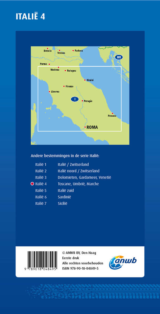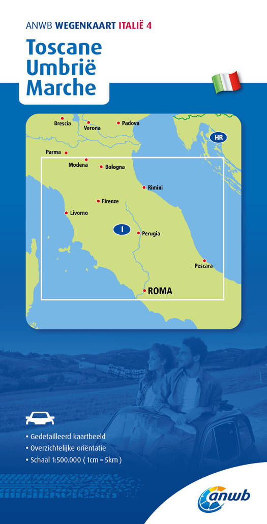 Met de gedetailleerde en nauwkeurige ANWB Wegenkaart Italië 4. Toscane, Umbrië, Marche ga je goed voorbereid op autovakantie. Schaal van 1:500.000 (1 cm = 5 km).