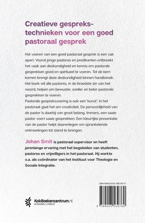 'Tot de kern komen' van Johan Smit is een praktisch boek over het voeren van pastorale gesprekken, bestemd voor ambtsdragers en pastoraal werkers. Het voeren van een goed pastoraal gesprek is een vak apart. Vooral jonge pastores en predikanten ontbreekt het vaak aan deskundigheid en kennis om pastorale gesprekken goed en spiritueel te voeren. De vernieuwde editie van dit boek brengt deze kennis en kunde binnen handbereik en wil alle pastores helpen om bewuster, sneller en beter pastorale gesprekken te voeren. Het richt zich op iedereen die zich met of zonder ambt toelegt op heilzame ontmoetingen met mensen.
