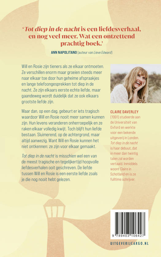 Tot diep in de nacht is misschien wel een van de meest tragische en tegelijkertijd hoopvolle liefdesverhalen ooit geschreven. De liefde tussen Will en Rosie is een eerste liefde zoals je die nog nooit hebt gelezen.
