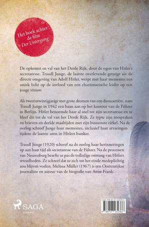 De opkomst en val van het Derde Rijk, door de ogen van Hitler's secretaresse. Traudl Junge, de laatste overlevende getuige uit de directe omgeving van Adolf Hitler, werpt met haar memoires een uniek licht op de invloed van een charismatische leider op een jonge vrouw.