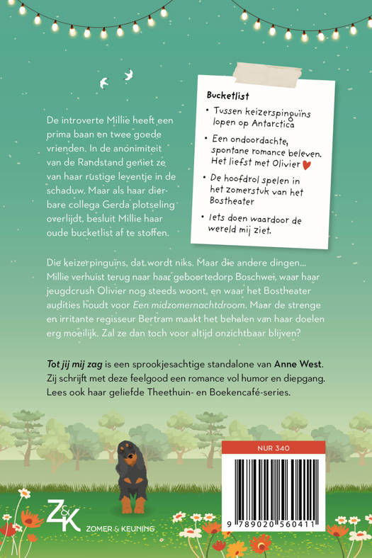 Anne West schreef eerder onder andere de populaire Theetuin-serie en Boekencafé-serie. 'Tot jij mij zag' is een sprookjesachtige standalone waarin Shakespeares 'Een midzomernachtsdroom' naar de Veluwe wordt gehaald.