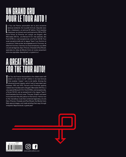 Le Tour Auto, unique dans son principe, marie des courses sur circuit, des “spéciales” de rallye et de longues liaisons à travers la France. Chaque année, un nouvel itinéraire et, parmi les concurrents, un ou plusieurs modèles mis en vedette. L'édition 2023 relie Paris à Cannes, en passant par les célèbres circuits Dijon-Prenois, Bresse, Charade et Paul-Ricard.