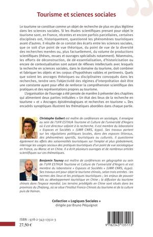 Le tourisme se constitue comme un objet de recherche de plus en plus légitime dans les sciences sociales. Néanmoins, certaines disciplines ont, historiquement, questionné les phénomènes touristiques avant d'autres. Il résulte de ce constat des écarts entre les sciences sociales, que ce soit d'un point de vue théorique, de la diversité des recherches menées ou du volume de productions scientifiques. Quels que soient les ancrages théoriques ou disciplinaires convoqués dans cet ouvrage, l'objet consiste à renforcer la compréhension scientifique des pratiques et des représentations propres au tourisme.