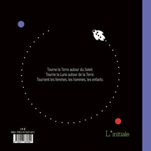 Tourne la Terre autour du Soleil. Tourne la Lune autour de la Terre. Tournent les femmes, les hommes, les enfants. Le texte est présenté en 5 langues : Français, Espagnol, Anglais, Arabe littéraire et Mandarin.