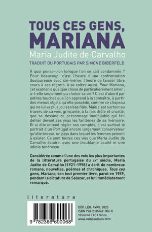 À quoi pense-t-on lorsque l'on se sait condamnée ? Pour beaucoup, c'est l'heure d'une confrontation douloureuse avec soi-même, l'heure de laisser libre cours à ses regrets, à sa colère aussi. Pour Mariana, cet examen a quelque chose de particulièrement amer : a-t-elle seulement pu choisir sa vie ? C'est d'abord par petites touches que l'on apprend à la connaître, à partir des menus objets qu'elle possède, comme ce chapeau qui ne lui va plus, ou ses bas filés. Mais c'est surtout au travers de sa voix, grinçante, à la fois drôle et cruelle, que se dessine ce personnage inoubliable qui fait défiler devant ses yeux les fantômes de sa mémoire. Et si elle entend régler ses comptes, c'est surtout le portrait d'un Portugal encore largement conservateur qu'elle brosse, un pays dans lequel les femmes peinent à exister. Ce sont toutes ces vies que Maria Judite de Carvalho éclaire, avec une troublante acuité et une infinie tendresse.