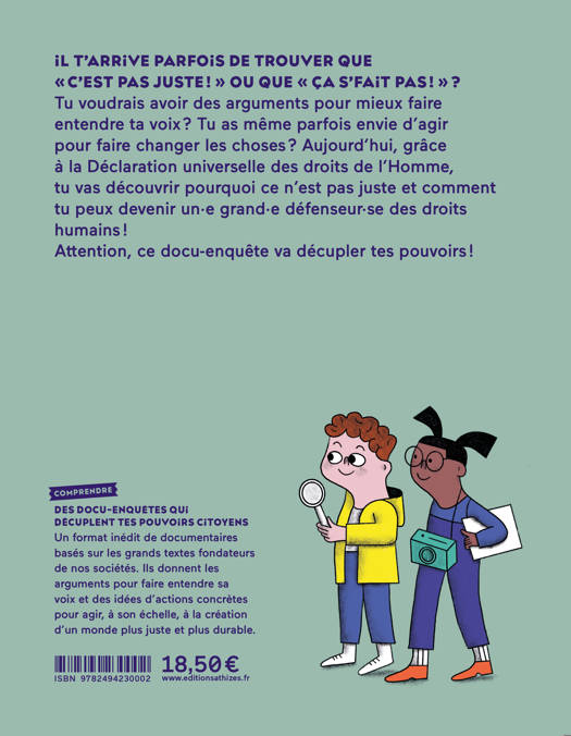 Tous libres et égaux ? Juliette et Pablo mènent l'enquête munis de la Déclaration universelle des droits de l'Homme. Pars avec eux, cherche, découvre dans les décors de ton quotidien, les droits humains qui sont respectés et ceux qui sont bafoués. Tu as tout trouvé? Tu as appris des choses ? Bravo! Tourne maintenant la page et découvre le rapport d'enquête et des idées d'actions concrètes pour devenir encore plus fort qu'un enquêteur: un grand défenseur des droits humains!