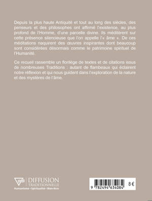 Depuis la plus Haute Antiquité et tout au long des siècles, des penseurs et des philosophes ont affirmé l’existence, au plus profond de l’Homme, d’une parcelle divine. Ils méditèrent sur cette présence silencieuse que l’on appelle l’« âme ». De ces méditations naquirent des œuvres inspirantes dont beaucoup sont considérées désormais comme le patrimoine spirituel de l’Humanité. Ce recueil rassemble un florilège de textes et de citations issus de nombreuses Traditions : autant de flambeaux qui éclairent notre réflexion et qui nous guident dans l’exploration de la nature et des mystères de l’âme.