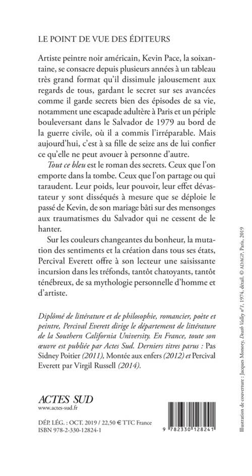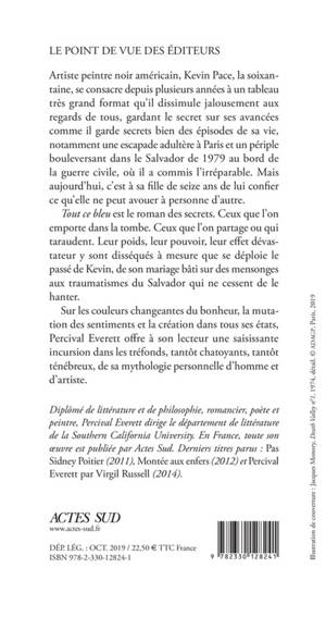 Sur les couleurs changeantes du bonheur, la mutation des sentiments et la création dans tous ses états, Percival Everett offre à son lecteur une saisissante incursion dans les tréfonds, tantôt chatoyants, tantôt ténébreux, de sa mythologie personnelle d'homme et d'artiste.