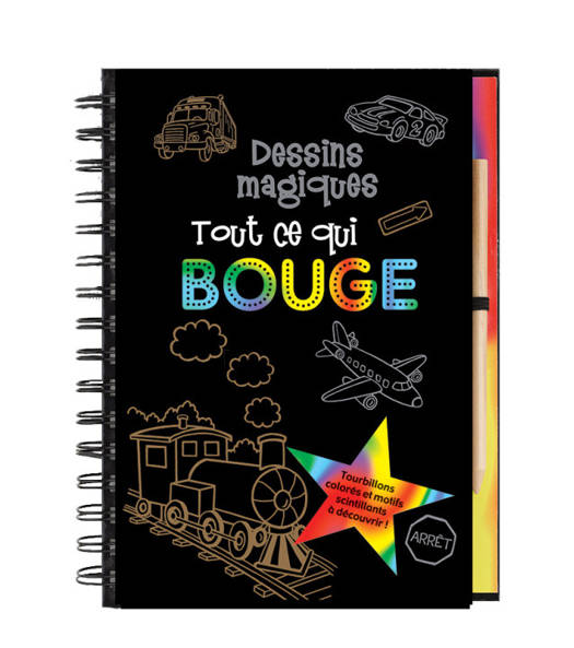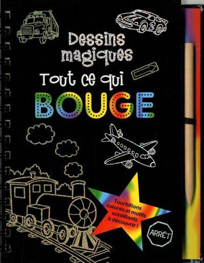 A vos marques ! Prêts ? Partez ! Fais rugir ton moteur, prends la plume de bois et suis 20 croquis simples d’avion, de train, de camion, et d’autres moyens de locomotion. Comme par magie, des motifs scintillants et colorés apparaîtront sur les pages noires !