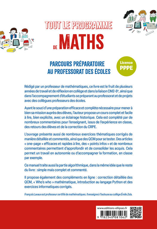 Cet ouvrage tout le contenu du programme de la Licence PPPE en Mathématiques (de la L1 à la L3) et proposent de faire le point sur les connaissances attendues à la fin de la licence, c’est-à-dire pour l’entrée en Master MEEF au cours duquel les étudiants préparent le CRPE.