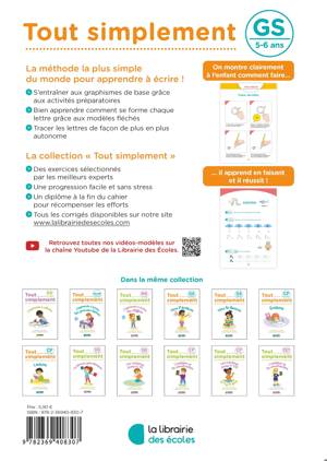 "Ce cahier d’écriture « spécial maternelle » coloré et illustré permettra à votre enfant d’apprendre efficacement et facilement à tracer les lettres en cursives. Avec de nombreuses activités de graphisme, il apprendra à tracer les lignes de base nécessaires à l’apprentissage de l’écriture. Il s’entraînera à tracer chaque lettre sur des modèles fléchés de différentes tailles. Il pourra suivre le modèle fléché à gauche ou à droite de la ligne selon qu’il est droitier ou gaucher. En plus : des conseils pour bien se positionner et tenir son crayon. Ce cahier est conçu pour les droitiers et les gauchers."