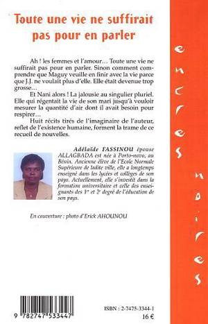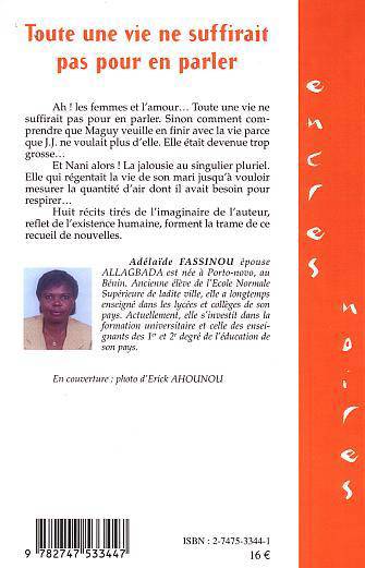 Ah ! les femmes et l'amour Toute une vie ne suffirait pas pour en parler. Sinon comment comprendre que Maguy veuille en finir avec la vie parce que J.J. ne voulait plus d'elle. elle était devenue trop grosse Et Nani alors ! La jalousie au singulier pluriel. Huit récits tirés de l'imaginaire de l'auteur, reflet de l'existence humaine, forment la trame de ce recueil de nouvelles.
