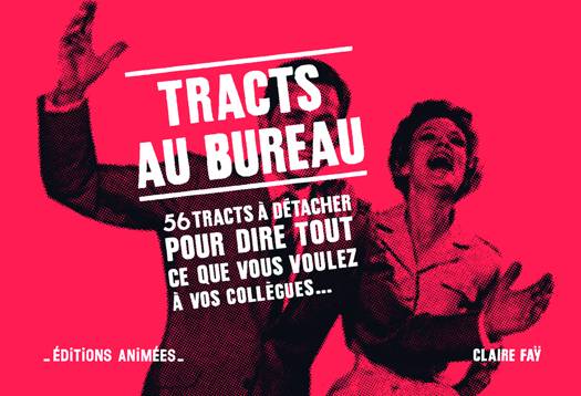 Dites-le avec humour ! Avec les Tracts au Bureau, nous vous proposons une nouvelle forme de communication par le jeu et l’image. Des Tracts à détacher et à afficher au bureau pour dire tout ce que vous rêvez de dire à tous vos collègues. Des tracts de revendications ou des tracts gratifiants pour créer de la complicité et désarmer bien des situations.