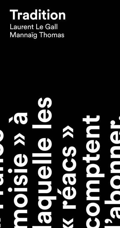 C'est un mot usé, fatigué, élimé parce qu'il a été beaucoup utilisé. À moins que l'amoindrissement de sa charge sémantique ne relève plutôt d'une discordance avec l'époque. La tradition ne serait plus à la mode. Paradoxalement. Repris à l'envi dans la communication patrimoniale qui vante l'authenticité, le chez-soi et l'immémorialité, ce mot subit, au même moment, un racornissement de son domaine d'assignation. Bonne à n'être qu'un slogan pour des publicités peu inspirées, coincée dans l'étau de l'injonction mémorielle et du colifichet touristique, la tradition se fait rigoriste à l'autre bout du portefeuille langagier. Les " tradis ", ce sont, pour beaucoup d'entre nous, ces autres, dont nous peinons quelquefois à comprendre, sur fond de " Manif pour tous " et de soutanes tout droit sorties de Saint-Nicolas-du-Chardonnet, un argumentaire et des attitudes qui relèvent de son orthopraxie. Une tradition en majesté en quelque sorte, éloignée de ce qu'elle est de fait : bien moins la lecture littérale d'un dogme qu'une somme d'interprétations d'un noyau dur qui sert in fine d'entregent à des signifiants flottants.