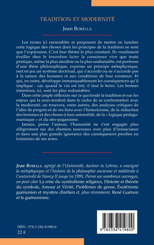 Les textes ici rassemblés se proposent de mettre en lumière cette logique des choses dont les principes de la tradition ne sont que l'expression. C'est leur thème le plus constant. Ils voudraient éveiller chez le benevolens lector la conscience vive que toute pratique, même la plus anodine ou la plus souhaitable, est porteuse d'une thèse philosophique, exprime un principe métaphysique, met en jeu un système doctrinal, qui s'accorde ou ne s'accorde pas à la nature des hommes et aux conditions de leur existence. Et qui, en outre, développe immanquablement les conséquences qu'il implique: car, quand le vin est tiré, il faut le boire. Les bonnes intentions, ici, sont les plus redoutables. Dans cette ample réflexion sur ce qui fonde la tradition et sur les enjeux qui la sous-tendent dans le cadre de sa confrontation avec la modernité, on trouvera, entre autres, des analyses critiques de l'idée de progrès et de ses liens avec l'historicisme, de la réduction des hommes et des choses à leur ustensilité, de la logique pédago-maniaque et du néo-paganisme. Jamais, pense l'auteur, l'humanité ne s'est engagée plus allègrement sur des chemins nouveaux avec plus d'insouciance et dans une plus grande ignorance des conséquences proches ou lointaines de ses actes.
