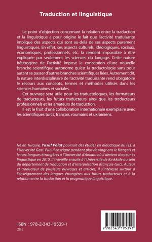 Cet ouvrage, fruit d'une collaboration internationale exemplaire avec les scientifiques turcs, français, roumains et ukrainiens, sera utile pour les traductologues, les formateurs de traducteurs, les futurs traducteurs ainsi que les traducteurs professionnels et les amateurs de traduction.