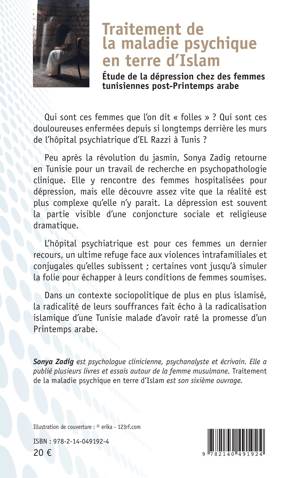 Qui sont ces femmes que l'on dit folles Qui sont ces douloureuses enfermées depuis si longtemps derrière les murs de l'hôpital psychiatrique d'EL Razzi à Tunis ? Peu après la révolution du jasmin, Sonya Zadig retourne en Tunisie pour un travail de recherche en psychopathologie clinique. Elle y rencontre des femmes hospitalisées pour dépression, mais elle découvre assez vite que la réalité est plus complexe qu'elle n'y parait. La dépression est souvent la partie visible d'une conjoncture sociale et religieuse dramatique. L'hôpital psychiatrique est pour ces femmes un dernier recours, un ultime refuge face aux violences intrafamiliales et conjugales qu'elles subissent; certaines vont jusqu'à simuler la folie pour échapper à leurs conditions de femmes soumises. Dans un contexte sociopolitique de plus en plus islamisé, la radicalité de leurs souffrances fait écho à la radicalisation islamique d'une Tunisie malade d'avoir raté la promesse d'un Printemps arabe.