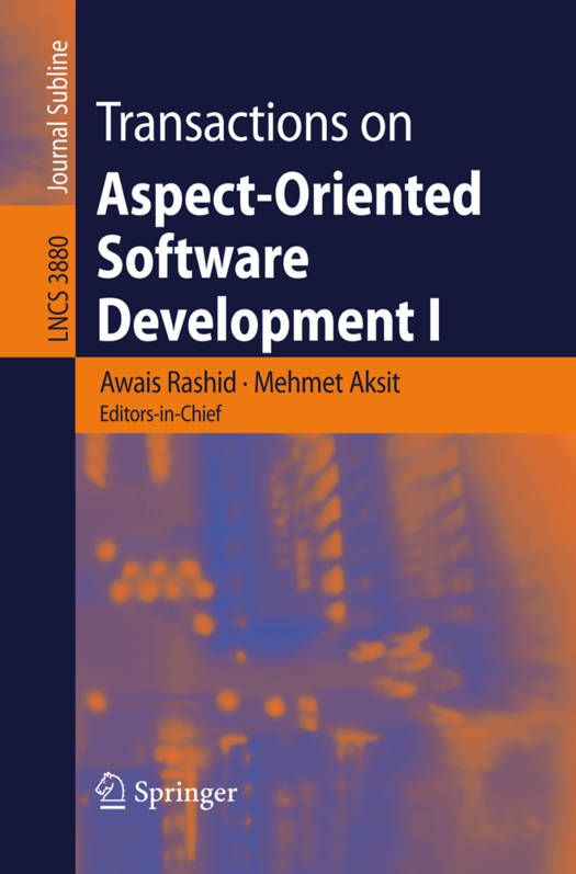 The LNCS Journal Transactions on Aspect-Oriented Software Development is devoted to all facets of aspect-oriented software development (AOSD) techniques in the context of all phases of the software life cycle, from requirements and design to implementation, maintenance and evolution. The focus of the journal is on approaches for systematic identification, modularization, representation and composition of crosscutting concerns, i.e., the aspects, evaluation of such approaches and their impact on improving quality attributes of software systems.