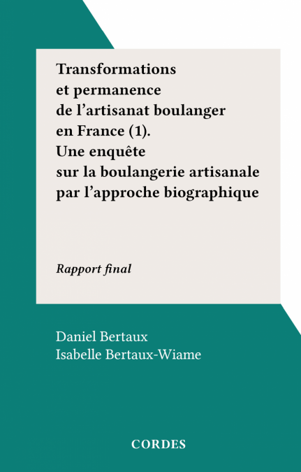 4. Transformations et permanence de l'artisanat boulanger en France (1). Une enquête sur la boulangerie artisanale par l'approche biographique