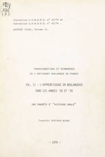 2. Transformations et permanence de l'artisanat boulanger en France (2). L'apprentissage en boulangerie dans les années 20 et 30