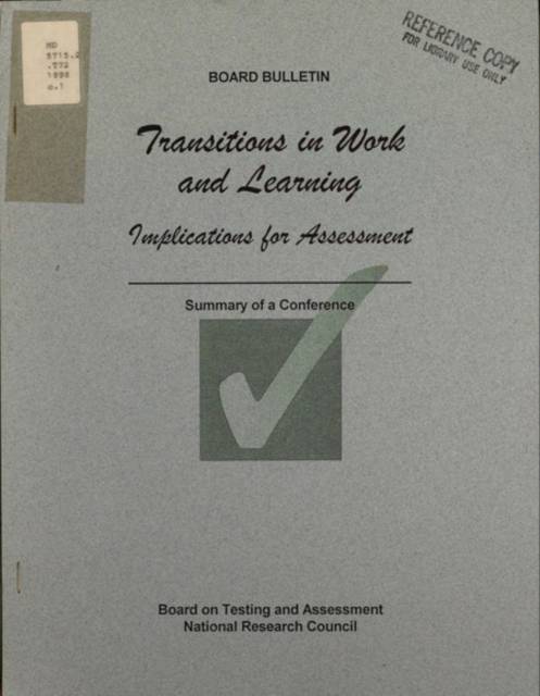 Transitions in Work and Learning considers the role of assessment in facilitating improved labor market transitions and life-long learning of American workers. It addresses the apparent mismatch between skill requirements of high-performance workplaces and skills acquired by students in school, the validity of existing assessment technologies to determine skills and competencies of persons entering various occupations, and ethical and legal issues in the implementation of new testing and certification programs. The book also examines the role of assessment in determining needed skills; developing ongoing education and training; and providing information to employers, prospective workers, and schools.