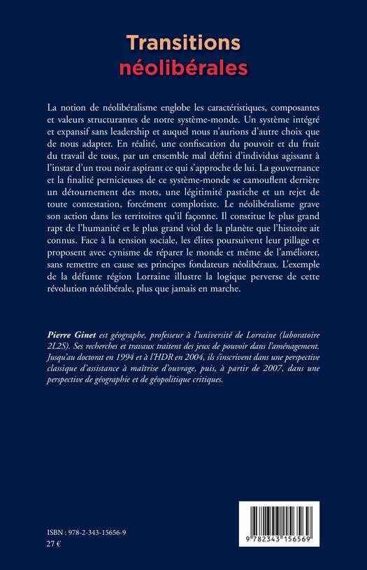 Le présent ouvrage vise une relecture et une mise en perspective de travaux récents au regard des changements sociétaux et géopolitiques de notre monde sous influence néolibérale ? Mais comment définir le néolibéralisme ? Une dérivée du capitalisme ? Une version soft du libéralisme ? Une sorte d'incarnation conceptuelle de la fameuse "dynamique de l'Occident" ? Le pire des systèmes politiques à l'exception de tous les autres ? L'exemple de la défunte région Lorraine illustre la logique perverse de cette révolution néolibérale, plus que jamais en marche.