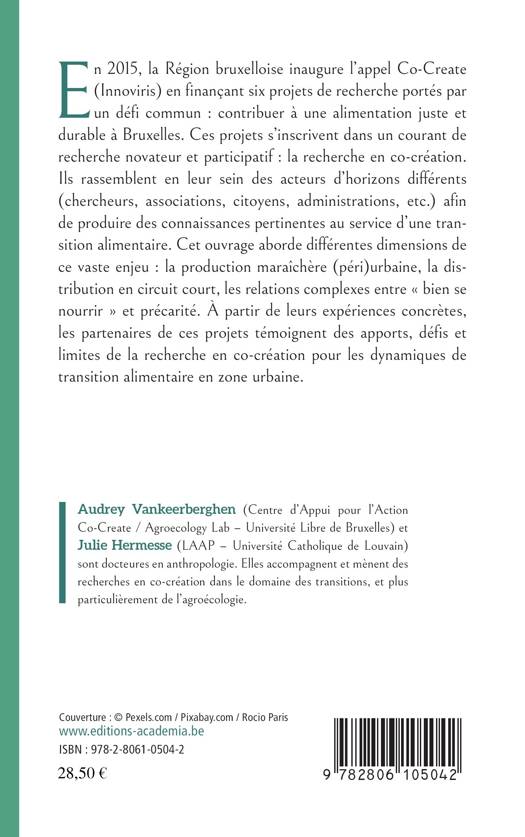 Cet ouvrage contribue à la réflexion de deux enjeux d’actualité que sont la transition des systèmes alimentaires justes et durables et la recherche action participative. Il témoigne d’expériences de recherche récentes et concrètes qui apportent une meilleure compréhension de ces enjeux en Région bruxelloise, tout en offrant un regard inspirant pour d’autres contextes urbains.