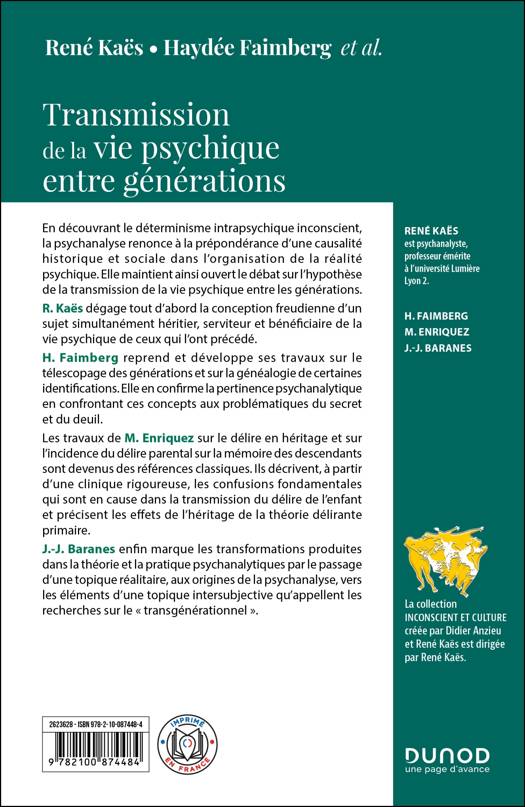 R. Kaës dégage tout d’abord la conception freudienne d’un sujet simultanément héritier, serviteur et bénéficiaire de la vie psychique de ceux qui l’ont précédé.