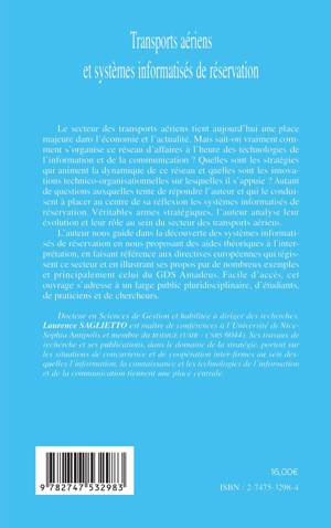 Le secteur des transports aériens tient aujourd’hui une place majeure dans l’économie et l’actualité. Comment s’organise ce réseau d’affaires à l’heure des technologies de l’information et de la communication ? Quelles sont les innovations technico-organisationnelles sur lesquelles il s’appuie ? L’auteur nous guide dans la découverte des systèmes informatisés de réservation en nous proposant des aides théoriques à l’interprétation. Facile d’accès, cet ouvrage s’adresse à un large public pluridisciplinaire, d’étudiants, de praticiens et de chercheurs.