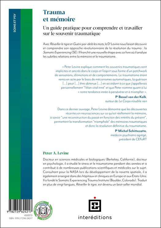 Dans cet ouvrage, l’auteur, fondateur de la Somatic Experiencing, explore le lien fondamental qui existe entre la mémoire et le traumatisme. En effet si notre corps et notre cerveau n’avaient pas cette capacité de mémoire, le traumatisme n’existerait pas. Traumatisme et mémoire sont donc liés et comprendre le fonctionnement de cette interaction est fondamental dans le traitement du traumatisme.