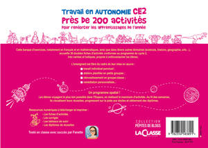 Cet ouvrage bi-média est le deuxième tome d’une collection (Voir Travailler en autonomie -CM1) présentant une programmation annuelle d’activités autonomes pour chaque niveau de l’école élémentaire.