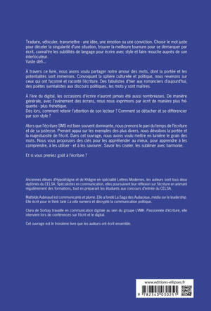 À l’ère du digital, les occasions d’écrire n’auront jamais été aussi nombreuses. De manière générale, avec l’avènement des écrans, nous nous exprimons par écrit de manière plus fréquente - plus frénétique. Dès lors, comment retenir l’attention de son lecteur ? Comment se détacher et se différencier par son style ? Pour répondre à ces questions, cet ouvrage: