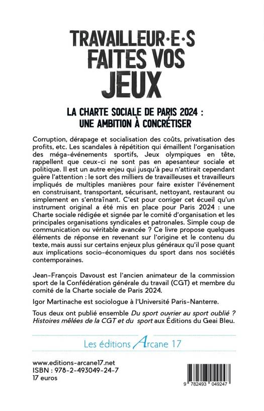 Les scandales à répétition qui entourent l’organisation des méga-événements sportifs, et notamment les Jeux olympiques, montrent que ceux-ci sont loin d’être en apesanteur sociale et politique comme certains voudraient le laisser penser. Conditions d’attribution opaques, dérapage des coûts aux dépens de la collectivité tandis que les juteux profits sont privatisés, installations laissées à l’abandon sitôt la compétition refermée et l’on en passe. On pourrait ajouter les mouvements de boycott pour des motifs diplomatiques divers ou encore l’exclusion d’athlètes ayant osé arborer un symbole à connotation politique. Mais il est un autre sujet qui jusqu’à récemment n’attirait guère l’attention : le sort des milliers de travailleuses et travailleurs impliqués dans l’organisation des Jeux. Or, des ouvriers employés à la construction des infrastructures nécessaires à la compétition aux escouades de volontaires mobilisés pour assurer diverses tâches aussi invisibles qu’indispensables, en passant par les agents chargés d’assurer une sécurité dont ils ne bénéficient pas eux-mêmes et les athlètes dont l’activité peine encore à être reconnue comme un vrai travail, les Jeux olympiques et paralympiques constituent un monde du travail à part entière avec ses propres enjeux.<br /><br /> Enfin quel héritage un tel événement laissera t’il au bénéfice des populations jusqu’à la gouvernance du sport ?