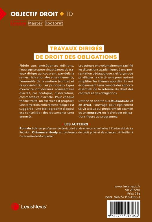 1/ Un complément indispensable au cours de droit des obligations suivi en L2 2/ Des séances proposant des exercices corrigés pour aider les étudiants à préparer leurs séances de TD. 3/ Des corrigés clairs et didactiques, véritables guides à la réflexion et à l'analyse.