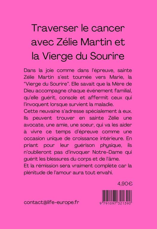 Dans la joie comme dans l’épreuve, sainte Zélie Martin s’est tournée vers Marie, la “Vierge du Sourire”. Elle savait que la Mère de Dieu accompagne chaque événement familial, qu’elle guérit, console et affermit ceux qui l’invoquent lorsque survient la maladie. Cette neuvaine s’adresse spécialement à eux. Ils peuvent trouver en sainte Zélie une avocate, une amie, une soeur, qui va les aider à vivre ce temps d’épreuve comme une occasion unique de croissance intérieure. En priant pour leur guérison physique, ils n’oublieront pas d’invoquer Notre-Dame qui guérit les blessures du corps et de l’âme. Et la rémission sera vraiment complète car la plénitude de l’amour aura tout envahi.