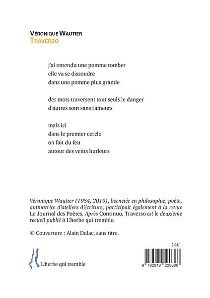 Toute forme d’excès est absente de la poésie de Véronique Wautier. Elle privilégie au contraire le registre de la discrétion : pas de mots à l’emporte-pièce, pas de grandiloquence, mais quelques moments de notre vie difficiles à traverser que son langage parvient, grâce à une économie d’effets, à nous rendre acceptables.