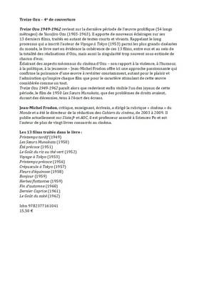 - Un ensemble de 13 films, traités en autant de textes courts, dont la cohérence au sein de la totalité des réalisations d’Ozu est aussi significative que riche d’une diversité trop souvent sous-estimée.