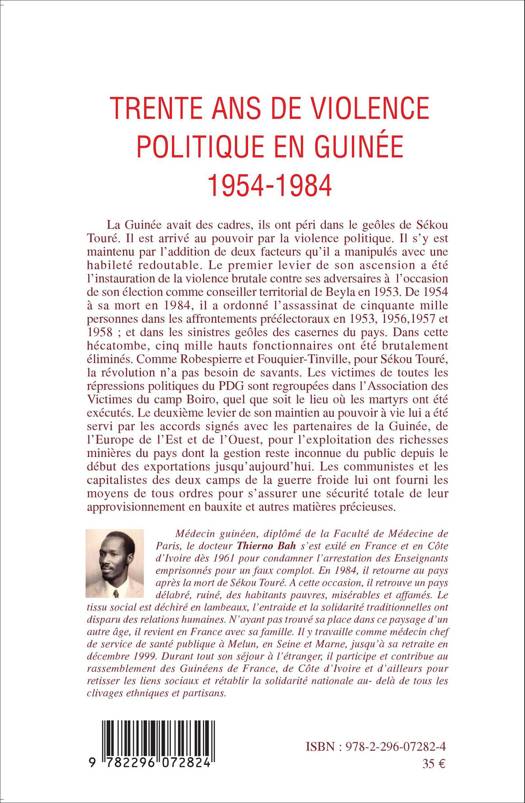 La Guinée avait des cadres, ils ont péri dans les geôles de Sékou Touré. Il est arrivé au pouvoir par la violence politique. Il s'y est maintenu par l'addition de deux facteurs qu'il a manipulés avec une habileté redoutable : d'une part l'instauration de la violence brutale contre ses adversaires et l'assassinat de 50000 personnes entre 1954 et 1984, et d'autre part les accords signés avec l'Europe pour l'exploitation des richesses minières du pays dont la gestion reste inconnue du public encore aujourd'hui.