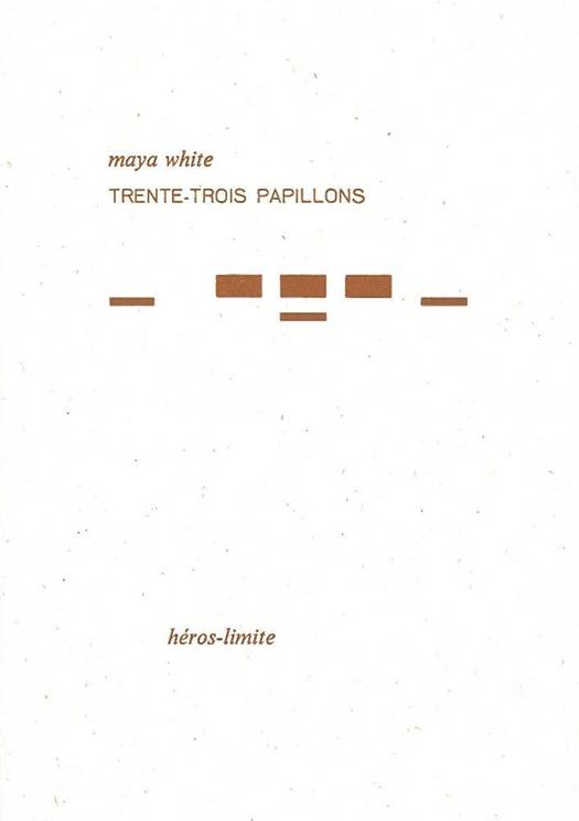 Les mots découpent un espace dans l’espace, ils fragmentent le quotidien. Ce livre n’est constitué que d’éléments intimes, et pourtant le propos n’est jamais « autocentré ». Anecdotes et sensations se suffisent à eux-mêmes et forment un monde en soi. Des images aux mots, il ne peut y avoir qu’un trait d’union, une même poétique. Maya White, dans les notes qui constituent le petit volume sorti en 2001 intitulé Anfall, nous décrit le quotidien d’un séjour à Berlin. Puis plus rien, aucune publication pendant près de dix ans. La vie continue et c’est ce qui nous est raconté dans Trente-trois papillons, une série de fragments écrits ces dernières années