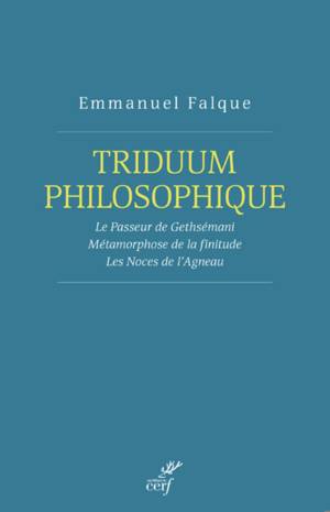 Voici, réunies en un seul volume, trois oeuvres fondamentales de la philosophie contemporaine. Voici la lecture continue qu'Emmanuel Falque mène des trois jours de la Passion du Christ. Voici, récapitulée, l'expérience de Dieu qui est celle de l'homme. Qu'en est-il de l'épreuve de l'angoisse, de la souffrance, de la mort à laquelle conduit le vendredi saint ? Qu'en est-il de l'épreuve de la naissance et de la résurrection à laquelle ouvre le dimanche pascal ? Qu'en est-il de l'épreuve du corps et de l'éros, de l'animalité et du chaos intérieur à laquelle appelle le jeudi saint ? C'est bien Le Passeur de Gethsémani qui, en opérant la Métamorphose de la finitude, institue Les Noces de l'Agneau. Ce triduum philosophique interroge l'humain pour dire et définir les conditions de son assomption par le divin. Une oeuvre capitale dont le rayonnement international ne fait que grandir. Philosophe marquant d'aujourd'hui, Emmanuel Falque est professeur, directeur de recherche et Doyen de la Faculté de philosophie de l'Institut catholique de Paris.