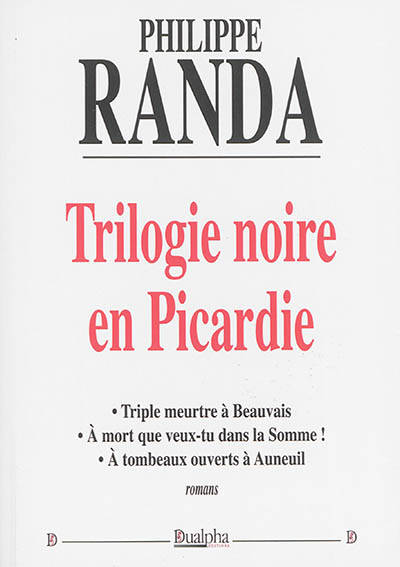Vous êtes amateur de bons romans policiers et enraciné dans votre province ? Trilogie noire en Picardie vous emportera dans un tourbillon d’aventures aux multiples rebondissements. D’enquêtes angoissantes en poursuites sanglantes, le suspense est assuré. Triple meurtre à Beauvais : Pourquoi a-t-on assassiné, la même nuit, le financier Claude Gervier, son secrétaire Abel Vergoz… et son neveu Carl Wermer ? Deux journalistes du Courrier Picard se lancent sur les traces de l’assassin… À mort que veux-tu dans la Somme ! : Un simple accident peut changer votre vie… Mais quand on doit quitter les siens, poursuivis par des tueurs, il n’est pas forcément conseillé de s’installer dans une communauté de marginaux… Des premiers ou des seconds, les pires ne sont sans doute pas ceux que l’on croit ! À tombeaux ouverts à Auneuil : Les Jaurlet sont des hors-la-loi de père en fils. Une tradition. Seul le dernier de la lignée a échappé à la funeste tradition, mais le destin finit toujours par rattraper ceux qu’il a choisi de corrompre.