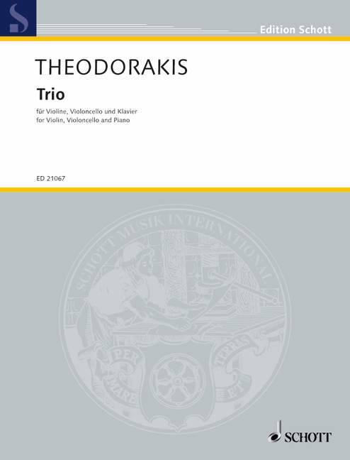 Theodorakis composed the "Trio for violin, violoncello and piano" in Athens during 1946-47. He had just completed his studies in composition at the Athens Conservatory and was preparing himself for his Diploma. However, he was overtaken by the Civil War. Thus, one part of the Trio was written in circumstances of persecution (underground) and another in exile (in the island of Ikaria). It is a work in which - as in the remaining works of that period - the influence of his classical music studies become apparent. Especially in the area of form, as opposed to the selection of the melodic material and the harmonic language, which bring out an authentic and original musical personality that often surprises us for its boldness. Instrumentation: violin, cello and piano