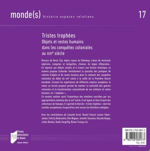 Ce numéro de la revue Monde(s) aborde frontalement la question des pratiques de collecte d'objets et de restes humains dans le contexte des conquêtes coloniales de la fin du XIXème siècle et du début du XXème siècle. Il réunit des historiens et des anthropologues formés dans différents pays européens et spécialistes de différents empires coloniaux. Il propose donc une véritable histoire connectée de ces pratiques de victoire et de muséification. Le problème central des mots et des catégories de butin, souvent laissée de côté par les travaux existants, est abordé par plusieurs des articles proposés. Les articles examinent non seulement la capture puis la circulation de ces prises de guerre et de ces objets négociés mais aussi leur vie sociale en métropole.