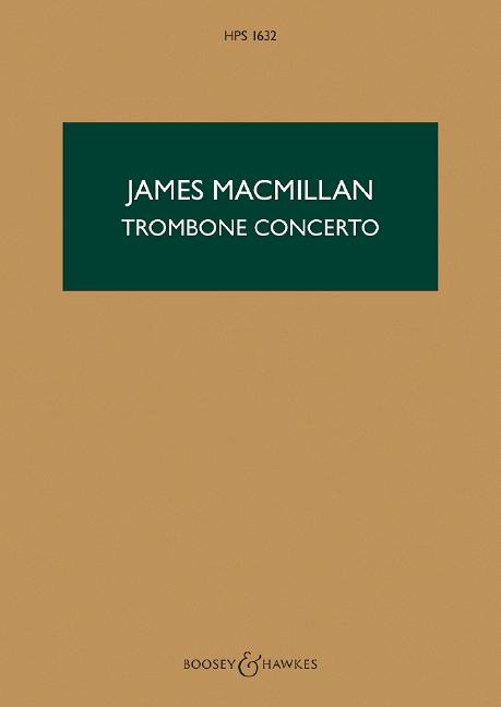 (Boosey & Hawkes Scores/Books). A major addition to the concertante trombone repertory, this single-movement work lasting 30 minutes was premiered in 2017 by Jorgenvan Rijen and the Royal Concertgebouw Orchestra, conducted by Ivan Fischer. Press reviews were ecstatic: "...this magnificent concerto enriches the repertoire...The trombone sang, sang, sang...then suddenly a spectacular mating dance of four trombones a la Stockhausen. At the very end van Rijen and MacMillan struck me down completely: between the serene harmonies which came to a moment of rest, the trombone once more entered with a heart-breaking eruption...the wonderful beauty of despair...It is a concerto for eternity, and trombone players could use one." - De Trouw.