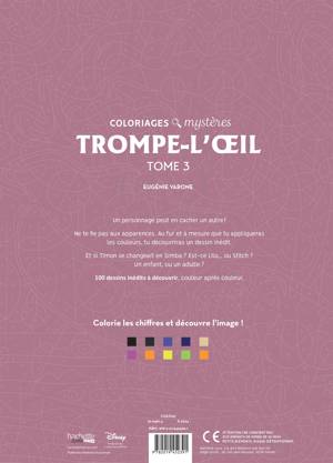 100 dessins inédits à découvrir, couleur après couleur. Redécouvre tes films Disney et Pixar préférés façon trompe-l’oeil.