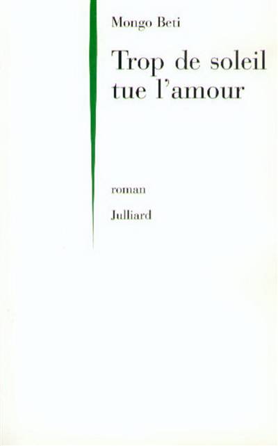 Le vol d'une collection de CD de jazz ? En apparence une broutille. Mais si le lendemain on vous colle le cadavre d'un inconnu dans votre appartement, vous commencez à douter de la bienveillance de votre prochain. Pourtant Zam, journaliste politique, mène une existence sinon paisible du moins routinière, jalonnée de cuites quotidiennes, de ruptures sanglantes et de réconciliations éternelles avec Bébète, d'articles sans lendemain sur la dictature du régime. Se pourrait-il que son investigation sur la spoliation foncière des communautés villageoises au profit du gouvernement ait attiré sur lui les foudres des services secrets ? Zam en doute. Jusqu'au jour où il sort des décombres de son immeuble ravagé par une explosion criminelle. Ses mésaventures ne font que commencer. Autour de lui l'inertie le dispute à l'absurdité : les policiers s'évertuent à ne pas enquêter, ses confrères de l'opposition trempent peu ou prou dans la corruption, les diplomates du pays des droits de l'homme ont à cœur de ne pas s'ingérer dans les affaires publiques. Si l'on ajoute à cette gabegie la disparition subite de Bébète poursuivie, dit-on, par un mercenaire français ; l'apparition non moins subite d'un fils naturel de Zam décidé à lui faire payer son abandon, on imagine à quel point notre héros aspire aux plaisirs simples de l'existence : un air du Duke ou de Parker et un whisky infect. Critiquer les institutions, peindre la misère morale des peuples, inventer mille rebondissements et des personnages aussi louches que truculents, telle fut la vocation des grands romans-feuilletons, de Sue à Balzac, telle est celle de Trop de soleil tue l'amour, peinture au vitriol d'un Cameroun dévasté par la corruption et la dictature. Entraîné par un écrivain d'une telle élégance morale et d'une verve aussi délirante, le lecteur n'hésite pas à rire en toute liberté. Quitte à mettre en sourdine les bons sentiments sur l'Afrique ou à s'interroger sur le rôle de la France dans les guerres et l'économie d'un continent à la dérive.