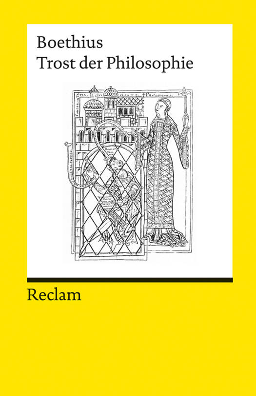 Das Hauptwerk des Boethius entstand im Kerker in den Monaten vor seiner Hinrichtung (524/526). Der schuldlos Verurteilte gelangt im Dialog mit der personifizierten Philosophie vom Zustand der Erschütterung zur gefassten Akzeptanz seines Schicksals. Die Trostschrift, die sich vor allem aus platonischem und stoischem Gedankengut speist, gilt als letztes Zeugnis der antiken Philosophie und hatte zugleich enormen Einfluss auf das mittelalterliche Denken der Scholastik.