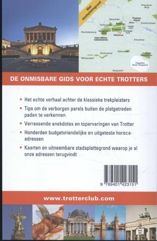 Tussen historisch en hedendaags Alle troeven van Trotter toegepast op de wereldsteden. De uitvouwbare kleurenplattegrond maakt je meteen wegwijs. De stad wordt wijk per wijk besproken, telkens met de klassieke indeling: slapen, eten, iets drinken, uitgaan, wat is er te zien ...? Trotter City is onmisbaar voor een geslaagde citytrip: met de toeristische highlights en de minder bekende tips verken je elk hoekje van de stad.